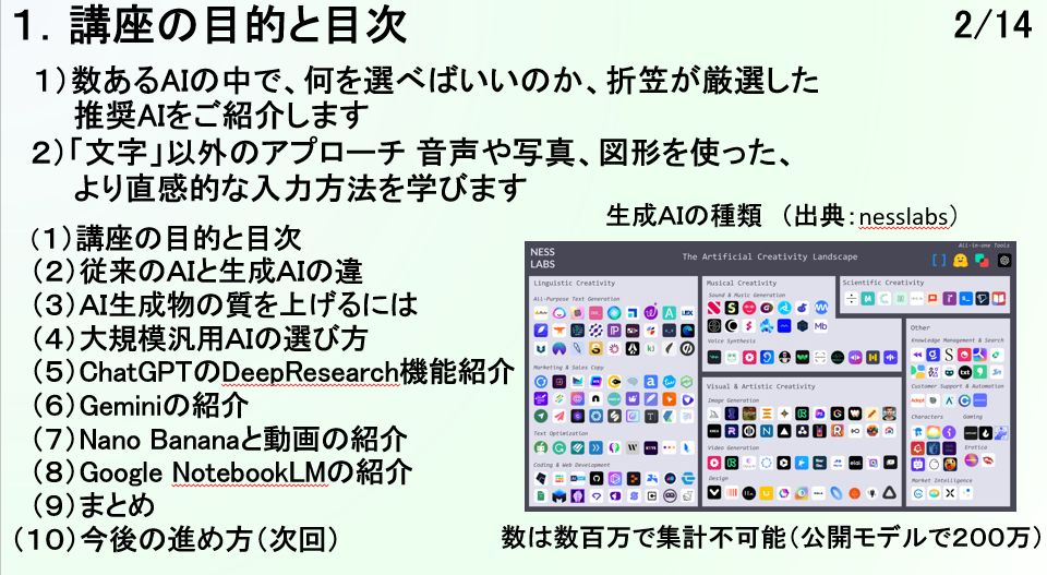 講座で皆さんが「Nano Banana Pro」を使って自分の理想のキャラクターをフィギュア化したり、「NotebookLM」で複雑な論文を一瞬で理解したりする姿を見て、小生は確信しました。