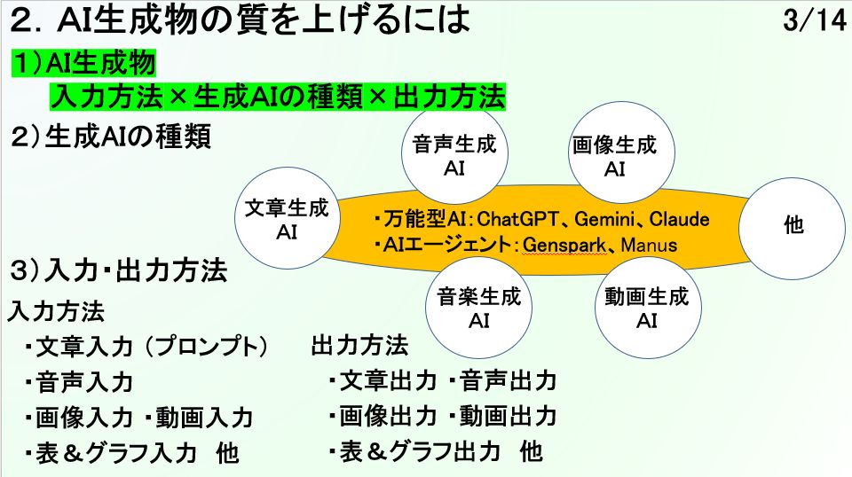 今回のテーマは「生成AIの種類と推奨」。巷には数え切れないほどのAIツールが溢れていますが、「どれを使えば正解なのか?」という疑問に、小生の経験を総動員してお答えしました。