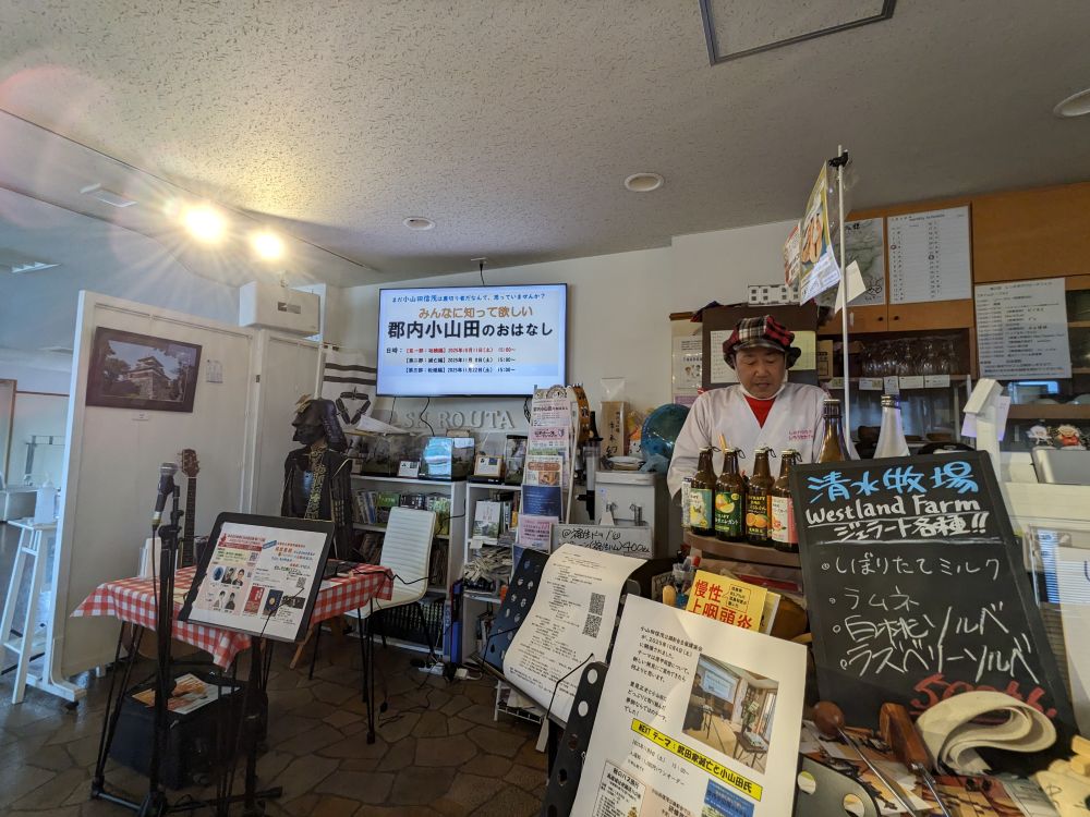 会場は、福生駅近くの「しろうたカフェ」という、温かみのある素敵な場所。スクリーンには「みんなに知って欲しい 郡内小山田のおはなし」というタイトルが映し出され、我々の期待は最高潮に達します。