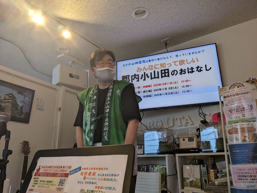 「まだ小山田信茂は裏切り者だなんて、思っていませんか?」という挑発的ともいえるサブタイトルに、夢酔先生のこの講座にかける熱い思いが凝縮されているようでした。