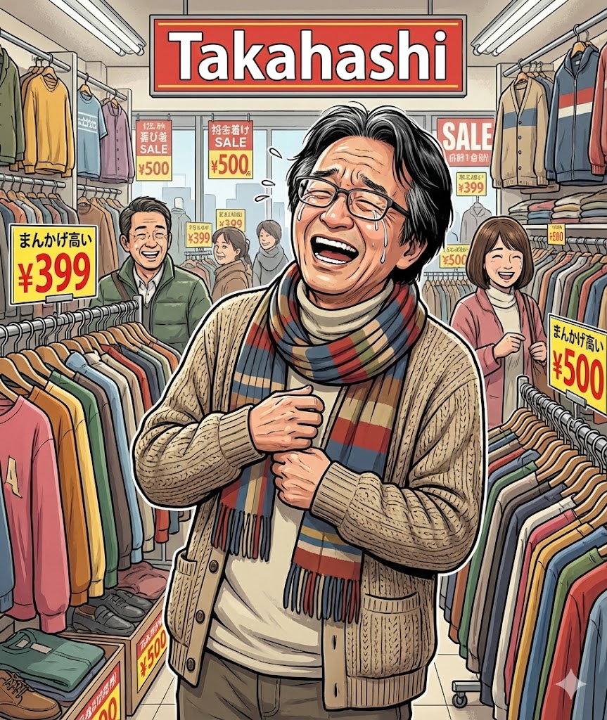 小生、今度から服を買うときは、まずタカハシで「初笑い」してからにしようと心に誓いました。