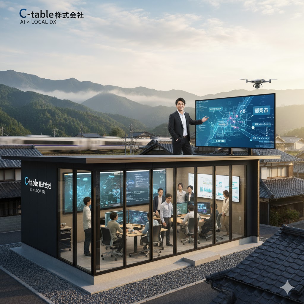 C-table株式会社は、山梨県都留市に拠点を置くテックベンチャーです。創業者である田邉耕平氏が、ソニーグループやエムスリーといった東京の大手企業で培った最先端のデジタルスキルを携え、故郷へUターンして設立しました。同社は、単なる技術提供に留まらず、「デジタル変革(DX)」と「超地域密着型(ハイパーローカル)」を掛け合わせることで、人口減少に直面する地方都市の課題解決と新たな産業創出を目指す、地方創生の先進的モデルとして注目されています。
