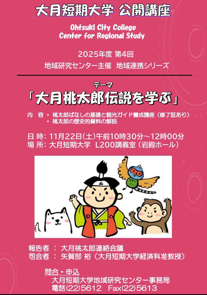 - 大月短期大学 公開講座「大月桃太郎伝説を学ぶ」(11月22日)