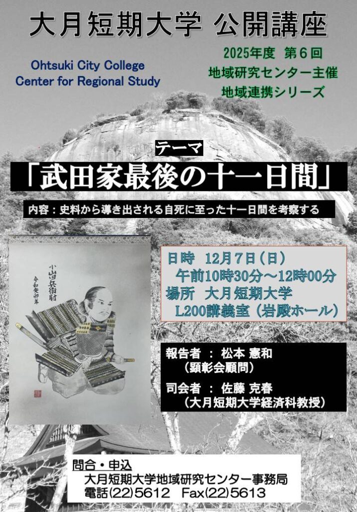 - 大月短期大学 公開講座「武田家最後の十一日間」(12月7日)
