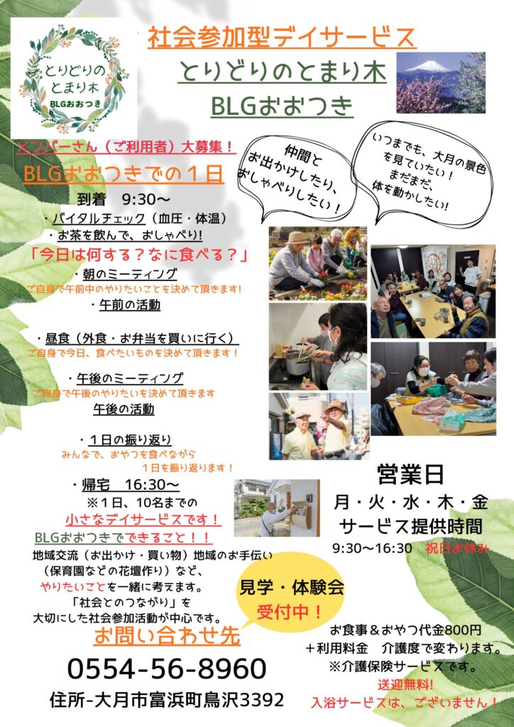 その2:社会参加型デイサービス「とりどりのとまり木 BLGおおつき」