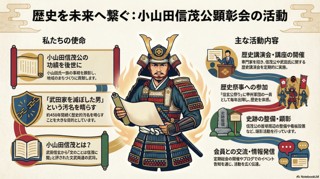 今年、小山田信茂公顕彰会は「郷土の英雄の復権」と「地域の活性化」を掲げ、多岐にわたる活動を展開して参りました。