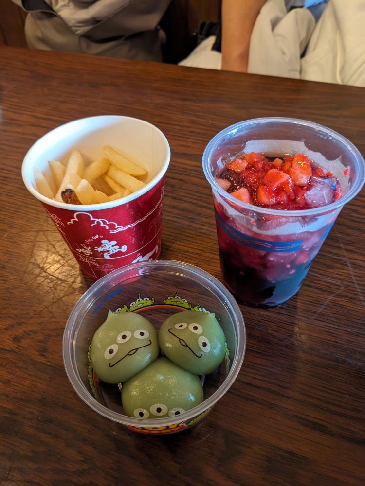 また、食の楽しみも格別です。定番のチュロスやポップコーンだけでなく、各テーマポートの特色を生かしたレストランでの食事は、まさに「美味いもの大発見」の連続でした(目標③達成)。
