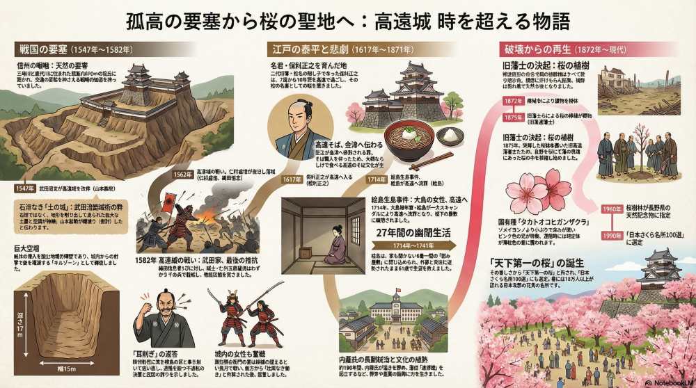 高遠城は、長野県伊那市高遠町に位置した城で、別名を「兜山城(かぶとやまじょう)」とも呼びます 1。