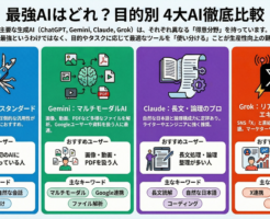 生成AIの技術革新が止まりません。 毎日、XではAIのモデルチェンジが紹介されています。 ChatGPT、Gemini、Claude、Grok……次々と登場する魅力的なサービスを前に、「機能が多すぎて、結局どれを選べばい […]